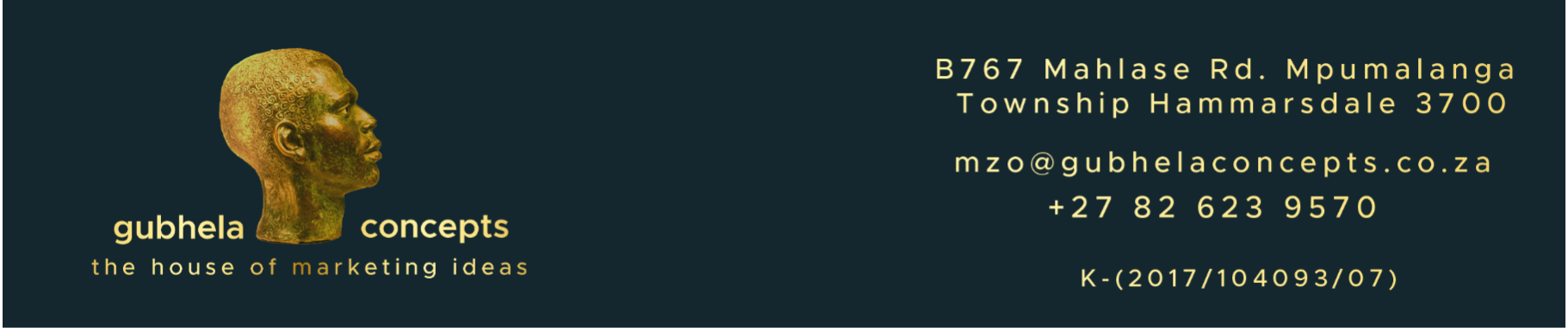 Established in 2017; at Level-1 BBBEE and based in Mpumalanga Township, KZN. Gubhela Concepts, ensconced in a business-to-business set up, where cognizant of mordern-day marketing practices, strategises and meticulously executes for deliverables invaluable to communities.